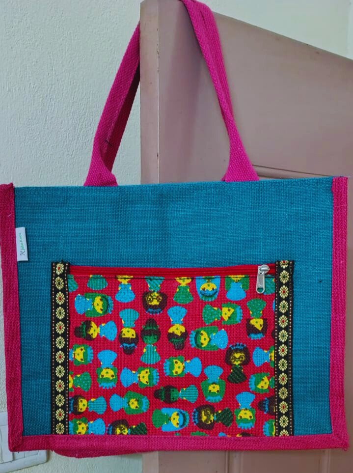 Jute shoulder bag for women: A Printed jute Shoulder bag is a practical bag for ladies going to college, the office, and on travel. It is comfortable and spacious with a main & front zip.